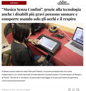 Suonare e comporre musica anche solo con il movimento degli occhi o il respiro. Si chiama “Musica Senza Confini” e attraverso diverse tecnologie e dispositivi sofisticati permette anche a donne e uomini con gravi limitazioni motorie e con deficit sensoriali di approcciarsi al mondo della musica. A ideare questo sistema è stato Manuele Maestri, musicista professionista che vanta collaborazioni con artisti nazionali ed internazionali, laureato presso il Conservatorio di Rovigo e di Trento.